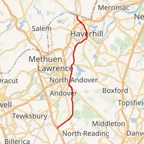 | Haverhill | 13.0 | 20.9 | Connector road to exit 106 on I-495 | ||