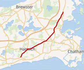 Route 39 is a 8.15-mile-long (13.12 km) southwest-northeast route through the towns of Harwich, Brewster and Orleans, on Cape Cod, Massachusetts. It begins and ends at Route 28, acting as a bypass route for those not wishing to follow 28 through Harwich Port and Chatham.