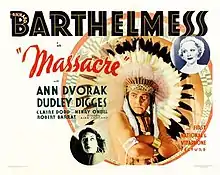Massacre is a 1934 American drama film directed by Alan Crosland. The film stars Richard Barthelmess and Ann Dvorak as its Native American protagonists, and also features Charles Middleton, Sidney Toler, Claire Dodd and Clarence Muse.