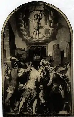 It was commissioned by Innocenzo Casari and his brother Giovanni Casari in compliance with the will of Giovanni Innocenzo Casari (died 19 September 1530), a third brother's son, which stipulated the erection of an altar dedicated to the Holy Innocents in the church of San Giovanni Evangelista.[1] Innocenzo was superior general of a monastery of Lateran Canons attached to that church and Giovanni its prior.