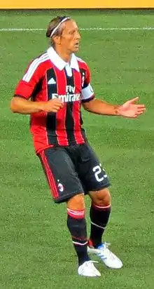 Massimo Ambrosini Cavaliere OMRI (Italian pronunciation: [ˈmassimo ambroˈziːni]; born 29 May 1977) is an Italian former professional footballer who mainly played as a defensive midfielder. At club level, he is mostly known for his successful time at Italian team AC Milan, where he spent eighteen years of his career, winning several titles, and captained the side from 2009 to 2013 following the retirement of Paolo Maldini. Ambrosini retired from professional football in 2014, after a season with Fiorentina. At international level, he represented Italy at the 2000 Summer Olympics, and in two UEFA European Championships, winning a runners-up medal at UEFA Euro 2000.
