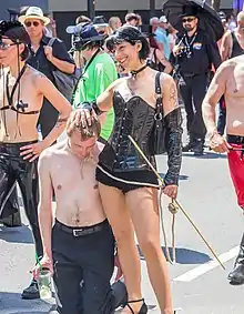 In BDSM, Master/slave, M/s or sexual slavery is a relationship in which one individual serves another in a consensual authority-exchange structured relationship. Unlike Dominant/submissive structures found in BDSM in which love is often the core value, service and obedience are often the core values in Master/slave structures.[1] The participants may be of any gender or sexual orientation. The relationship uses the term "slave" because of the association of the term with ownership rights of a master to their slave's body, as property or chattel. While male "masters" will usually be referred to as "Master", whether or not female Masters are referred to as "Master" or "Mistress" may depend upon whether they identify as following the leather subculture or BDSM path, or simply preference.[1]: 27–30
