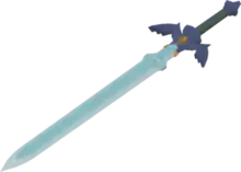 The Master Sword is a divine, magic sword and the signature weapon of Link, the hero of The Legend of Zelda series. It has become a defining aspect of Link's identity alongside the Hylian Shield.[1] The majority of The Legend of Zelda video games follow a similar story arc that involves Link starting the game with a simple weapon and embarking on a journey that eventually leads him to recovering the Master Sword. Once he obtains it, the sword makes Link much stronger in combat so that the player has greater capability to defeat the main antagonist at the end of the game.[2]