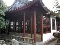 Also called The Hall of Dewy Grace, a three-bay structure with full gables named for a Li Bai verse, "The spring breeze is stroking gently the balustrade and peony is wet with dew".[1] It has front and rear courtyards and a front gable. It is currently used as a teahouse. |