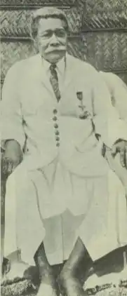 He was appointed an honorary Officer of the Order of the British Empire in the 1935 King's Birthday and Silver Jubilee Honours, and was invested in February 1936,[5] but died a few weeks later after a long illness.[1] He was buried at Mulinu'u in the burial ground housing the royal tombs of the Tama-a-Aiga, Samoa's highest chiefs.[1]