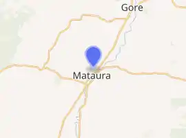 Mataura is situated on State Highway 1 and the Main South Line railway, on the eastern fringe of the Southland Plain 13 kilometres south west of Gore and 53 kilometres north east of Invercargill. On the southern side of the town, State Highway 96 diverges from SH 1 and runs westward through nearby communities such as Te Tipua and Waitane, ultimately terminating in Ohai. The town straddles the Mataura River which flows south through the town and is a source of brown trout. On the northern outskirts of the town the river falls over a bed of sandstone 6.1 metres (20 ft) high to create the Mataura Falls which is known by local Maori as Te Aunui (the great current).[2]