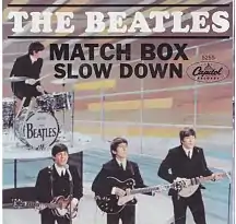 The Beatles were fans of Perkins and performed "Matchbox" during their shows in 1961 and 1962.[6] The song served as the vocal spot for their drummer, Pete Best, until his sacking in August 1962, at which point John Lennon took over as lead singer.[7] A live version from December that year was included on the 1977 album Live! at the Star-Club in Hamburg, Germany; 1962. In July 1963, the Beatles performed "Matchbox" with Ringo Starr, Best's replacement, on lead vocals[8] for their BBC radio show Pop Go the Beatles.[9] This version was included on the 1994 compilation Live at the BBC.[10]