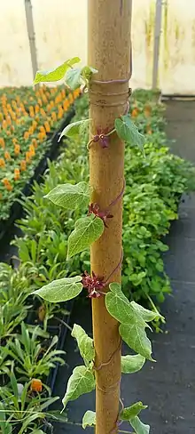 This species germinates around 30–60 days without stratification of any kind. It is slow to grow, but after around 60 days, the plant can then be trained to climb. This species is thigmotropic, so it is imperative to allow it to climb. Once plant has established upon a vertical face, flowers may begin to form at nearly every node. Flowers smell like rotting fruit.