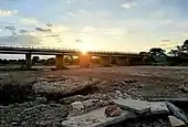 In February 2017, Tropical Cyclone Dineo triggered destructive floods[10] in and around Mathangwane, badly damaging the A3 highway between the City of Francistown and Sebina Junction and further north from the village of Nata to Gweta, badly disrupting traffic with some parts of the road having to be temporarily closed for safety.[11] The damages to the A3 highway later became some kind of death trap, causing a rise in fatal vehicle accidents in and around Mathangwane following delays by the Ministry of Transport and Communications in effecting repairs.[12][13]