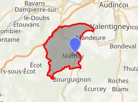 Mathay lies 6 km (3.7 mi) north of Pont-de-Roide.