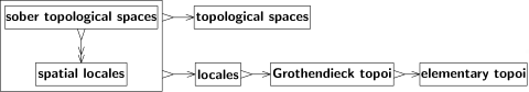 Such relations between species of spaces may be expressed diagrammatically as shown in Fig. 3. An arrow from A to B means that every A-space is also a B-space, or may be treated as a B-space, or provides a B-space, etc. Treating A and B as classes of spaces one may interpret the arrow as a transition from A to B. (In Bourbaki's terms,[9] "procedure of deduction" of a B-space from a A-space. Not quite a function unless the classes A,B are sets; this nuance does not invalidate the following.) The two arrows on Fig. 3 are not invertible, but for different reasons.