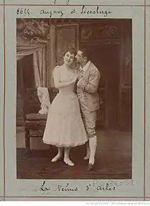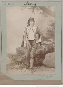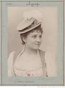 Her stage debut was in 1887 at the Opéra-Comique.[2] Her first important role, on 29 March 1888, was at that theatre in Madame Turlupin,[3] an opéra comique by Ernest Guiraud, in which she played Isabelle. She then sang in le Baiser de Suzon[4] by Herman Bemberg (premiere, role of Suzon); in Gounod's Mireille and Maillard's Les dragons de Villars. On 30 January 1889, she premiered Louis Varney's la Vénus d'Arles at the Théâtre des Nouveautés.[5] On 11 December 1891, at the Théâtre des Variétés, she was Denise de Flavigny in Hervé's Mam'zelle Nitouche. Later at the Variétés, she played in Offenbach's les Brigands.
