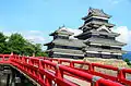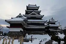 Matsumoto Castle (松本城, Matsumoto-jō), originally known as Fukashi Castle, is one of Japan's premier historic castles, along with Himeji and Kumamoto.[1] The building is also known as the "Crow Castle" (烏城, Karasu-jō) due to its black exterior. It was the seat of Matsumoto Domain under the Edo Period Tokugawa shogunate. It is located in the city of Matsumoto, in Nagano Prefecture and is within easy reach of Tokyo by road or rail.