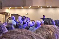 The New York Times reporter Jack Hitt was embedded with a team of skeptics to observe what was called "Operation Peach Pit", a sting following a procedure similar to one previously used against Thomas John. In this case, the target was Fraser. According to Hitt, Fraser "resembles Tom Cruise in the role of an oversharing altar boy. He has been on the circuit for years, has a book under his belt and works some Doubletree or Crowne Plaza back room every two or three days".[5] Kenny Biddle and a group of five friends, using aliases matching the faked Facebook accounts, attended Fraser's show at the Valley Forge Casino in King of Prussia for the sting.[6][5] As Biddle reported in Skeptical Inquirer, none of the team members were selected for a reading.[6]