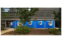 Hydronaut (2015) by Matthew Bird & Mark Richardson Designer/ Maker is a semi-permanent, demountable structure housing an armament of security staff at the northwest edge of Monash University’s Caulfield campus. The building occupies five parking bays on the ground level of an existing car-park and provides a panopticonic point-of-presence in a location known for its security challenges.[11]