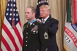 Matthew O. Williams (born October 3, 1981) is a sergeant major in the United States Army.[1] He received the Medal of Honor from President Donald Trump on October 30, 2019, for his actions on April 6, 2008, as a member of Operational Detachment Alpha 3336, Special Operations Task Force 11, Combined Joint Special Operations Task Force-Afghanistan in the Battle of Shok Valley.[2][3][4]