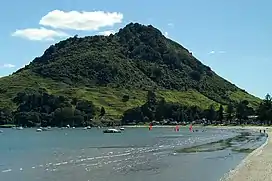 Mount Maunganui, or Mauao, commonly known by locals as The Mount,[1] is a dormant volcanic cone at the end of a peninsula in the town of Mount Maunganui, by the eastern entrance to the Tauranga Harbour in New Zealand. It is considered very important and tapu (sacred) by the local Māori iwi, featuring extensively in local mythology. It is also of significant historical value. The summit is 232 metres above sea level.