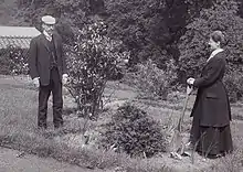 Eagle House near Bath in Somerset had become an important refuge for suffragettes who had been released from prison after hunger strikes. Mary Blathwayt's parents planted trees there between April 1909 and July 1911 to commemorate the achievements of suffragettes including Emmeline Pankhurst, Christabel Pankhurst, Annie Kenney, Charlotte Despard, Millicent Fawcett and Lady Lytton.[4] The trees were known as "Annie's Arboreatum" after Annie Kenney.[5][6] There was also a "Pankhurst Pond" within the grounds.[7]