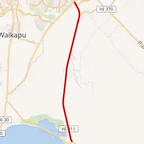 Maui Veterans Highway or Route 311 (formerly Mokulele Highway) is a highway on the island of Maui in Hawaii that runs south through the isthmus of Maui from the town of Kahului and nearby Kahului Airport, Maui's international airport, to Kihei, a distance of approximately 7 miles (11 km). Most of the highway passes through sugarcane fields. Its name was changed from Mokulele Highway to the current name in April 2017 when Governor David Ige signed a bill passed by both houses of the Legislature without opposition.[2]