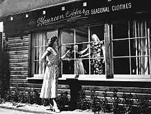 O'Hara's first major film role was that of Mary Yellen in Jamaica Inn (1939), directed by Alfred Hitchcock and co-starring Laughton.[24] O'Hara portrayed the innkeeper's niece, an orphan who goes to live with her aunt and uncle at a Cornish tavern,[25] a heroine which she describes as "torn between the love of her family and her love for a lawman in disguise". Laughton insisted that she change her name to the shorter "O'Mara" or "O'Hara", and she eventually decided on the latter after expressing contempt at both. [26] When she said "I like Maureen FitzSimons and I want to keep it", Laughton replied with, "Very well, you're Maureen O'Hara." (O'Hara would later say that "nobody would ever get [FitzSimons] straight.") [27] O'Hara noted that Laughton had always wanted a daughter of his own, and treated her as such,[28] and she later stated that Laughton's death in 1962 was like losing a parent. She worked well under Hitchcock, professing to have "never experienced the strange feeling of detachment with Hitchcock that many other actors claimed to have felt while working with him."[26] On the contrary, Laughton was engaged in a bitter battle with Hitchcock throughout the production and resented many of Hitchcock's ideas, including changing the nature of the villain from the novel.[29] Though Jamaica Inn is generally seen by critics and the director himself as one of his weakest films,[30] O'Hara was praised, with one critic stating "the newcomer, Maureen O'Hara is charming to look at and distinct promise as an actress". Seeing the film was an eyeopener for O'Hara and change in self-perception, having always seen herself as a tomboy and realizing that on screen she was a woman of great beauty to others. When she returned to Ireland briefly after the film was completed it dawned on her that life would never be the same again, and she was hurt when she attempted to make pleasant conversation to some local girls and they rejected her advances, considering her to be very arrogant. [31]