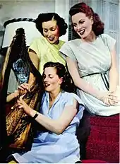 After the completion of The Hunchback of Notre Dame, World War II began, and Laughton, realizing his company could no longer film in London, sold O'Hara's contract to RKO.[39][40] O'Hara later professed that this "broke my heart, I felt completely abandoned in a strange and faraway place".[41] She next featured in John Farrow's A Bill of Divorcement (1940), a remake of George Cukor's 1932 film. O'Hara portrayed Sydney Fairchild, who was played by Katharine Hepburn in the original, in a film which she considered to have had a "screenplay [which] was mediocre at best".[42] The production became difficult for O'Hara after Farrow reportedly made "suggestive comments" to her and began stalking her at home; once he realized that O'Hara was not interested in him sexually, he began bullying her on set. Then, O'Hara punched him in the jaw one day, which put an end to the mistreatment.[43] O'Hara's performance was criticized by reviewers, with the critic from The New York Sun writing that she "lacked the intensity and desperation it must have; nor does she seem to have a sparkle of humor".[40] She next found a role as an aspiring ballerina who performs with a dance troupe in Dance, Girl, Dance (1940). She considered it to have been a physically demanding film, and felt intimidated by Lucille Ball during the production as she had been a former Ziegfeld and Goldwyn girl and was a superior dancer.[44] The two remained friends for many years after the film was completed.[45]