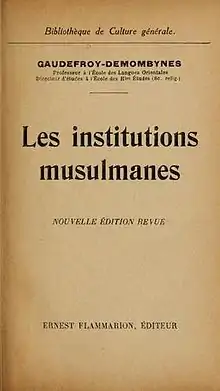 - 1921: Les Institutions musulmanes