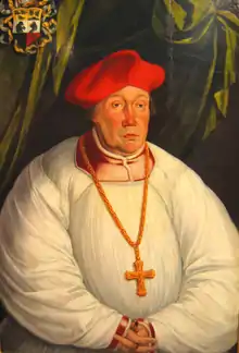 Mauritius Ferber (Polish: Maurycy Ferber; 1471 – 1 July 1537) was a member of the patrician Ferber family. As Roman Catholic Prince-Bishop of Warmia (Ermland), he prevented most towns in his diocese from converting to Protestantism while the surrounding hitherto Catholic State of the Teutonic Order was transformed into the Duchy of Prussia and became the first state to adopt Lutheranism.