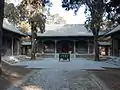 The tomb proper is only a few metres behind Shou Qiu. Shou Qiu was originally separate from Shaohao's tomb, but after the 12th century renovation of the tomb became part of the same complex that also included a shrine dedicated to the Yellow Emperor, and other buildings. When the tomb was renovated in 1738, the remainder of the complex had long disappeared, so a sacrificial hall was built for Shaohao (as was traditional for large tombs). As a site of mythological significance itself Shou Qiu had to be preserved, so the sacrificial hall was built in front of Shou Qiu, and the pyramid was enclosed into the complex. The tomb itself is the large earthen tumulus behind the pyramidal monument.