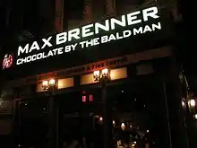 Max Brenner (Hebrew: מקס ברנר) is an Israeli multinational chocolate restaurant and retail brand headquartered in New York City, United States. The company operates more than 50 locations internationally, the majority (38) of which are in Australia.[1] Other locations include eight in Israel, two in the United States, one each in New York City & Philadelphia, as well as in Japan, Singapore, Russia, and China.[2][3][4] The company's mantra is that it is creating a new chocolate culture by inviting people to watch, taste and smell its love story.[5] It specializes in decadent, chocolate-based desserts such as fondue, crepes, milkshakes, waffles, and hot chocolate, many of which it serves in signature utensils.[6] Max Brenner is owned by Yaniv Shtanger and Dudu Vaknin.