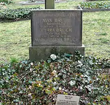 Bruch died in his home in Berlin-Friedenau in 1920. He was buried, next to his wife (who had died on 26 August the previous year), at the Old St. Matthäus churchyard at Berlin-Schöneberg. Margaretha later had carved on the gravestone, "Music is the language of God."[5]