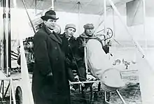 ![]() Max Lillie (center) with pilot R.G. Fowler. Frank Gotch, a famous wrestler, on the left. | |