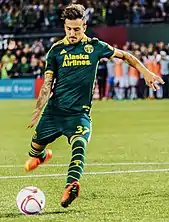 On 9 September 2013, Urruti was traded to Portland Timbers along with an international roster spot for the remainder of the 2013 season in exchange for Bright Dike, a first-round 2015 MLS SuperDraft pick, and allocation money.[11][12] Urruti made his debut for Portland on 14 September, coming on as a substitute in a 1–1 draw with Chivas USA. On 29 September, he scored his first Timbers goal in a 1–0 win over the LA Galaxy.[13] Urruti ended the regular season with 1 goal from 5 appearances with Portland, helping the Timbers finish top of the Western Conference.[14][15] He made 2 appearances in the playoffs as Portland reached the conference finals, where they lost to Real Salt Lake 5–2 on aggregate.[13]