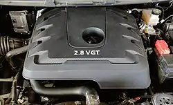 The original Maxus T60 is powered by a 2.8 liters R series SC28R engine based on a VM Motori RA 428 engine licence. It is an I4 intercooled, variable-geometry turbocharged diesel engine manufactured by SDEC. In November 2017, two new engine options were added; a 2.0 litre SAIC-GM MGE 20L4E Inline 4 turbocharged engine producing 224 horsepower, with 6 speed manual or 6 speed automatic transmission and an older 2.4 litre Mitsubishi Sirius-family SAIC 4G69S4N Inline 4 naturally aspirated petrol engine, producing 136 horsepower with a 5 speed Aisin manual gearbox.[10]