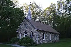 Mayberry Presbyterian Church is a historic Presbyterian church at 1127 Mayberry Church Road in Meadows of Dan, Patrick County, Virginia. It is one of the "rock churches" founded by Bob Childress. It was built in 1925, and is a one-story frame church building faced in natural quartz and quartzite stone. It features Gothic styled lancet windows. The rock facing was added to the frame building in 1948.[3]