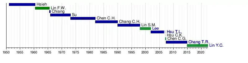 1 February 1973 | 20 December 1977 | Kuomintang | 7 |