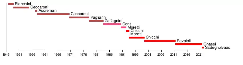 | 2 | Walter Ceccaroni | 1948 | 1954 | Italian Communist Party |