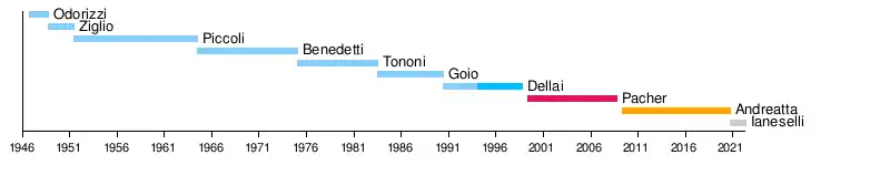 | 1 | Tullio Odorizzi | 21 September 1946 | 19 October 1948 | Christian Democracy |