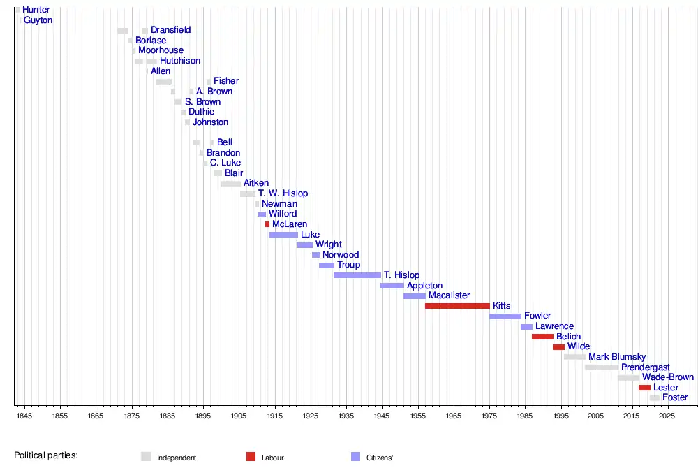 In 1863, a Town Board was established with three wards (Thorndon, Lambton, Te Aro), but no Mayor.