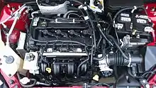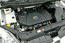 The Mazda L-series is a mid-sized inline 4-cylinder gasoline piston engine designed by Mazda as part of their MZR family, ranging in displacement from 1.8L to 2.5L. Introduced in 2001, it is the evolution of the cast-iron block F-engine. The L-series is used by Ford as their 1.8L to 2.5L Duratec world engine.