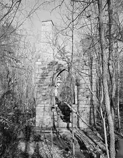 McCulloch's Gold Mill, also known as Rock Engine House, North State Mine, is a historic gold mill located near Jamestown, Guilford County, North Carolina. It consists of the ruins of the McCulloch Gold Mill, built of dry laid random ashlar granite construction in 1832. The ruins consist of two walls: one 29 feet, 6 inches long; and the second 24 feet, 8 inches wide. The second wall incorporates a chimney and Gothic arched opening.[2]