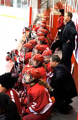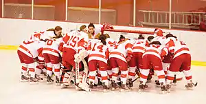 At the end of the 2008–09 season, the Martlets were the national women's champions for the second consecutive year.[11] In a rematch of the previous final, the Martlets defeat the Laurier Golden Hawks women's ice hockey team by a score of 3–1. The streak ended in the 2009–10 season, the Martlets appeared in the 2010 championship game, but were defeated by the Alberta Pandas by a 2–0 tally.[12] Goaltender Charline Labonte and head coach Peter Smith were not with the club as they participated in the 2010 Vancouver Winter Games. n the 2010–11 season,[13] the Martlets won the QSSF and CIS titles. In addition, the Martlets enjoy another undefeated season with 33 victories and no losses.[14] With their third Canadian championship in four years, the McGill Martlets hockey team become the most decorated in the history of McGill University. On October 1, 2011, the Martlets defeated the Vermont Catamounts women's ice hockey program by a 3–2 tally. With the win, coach Peter Smith earned the 300th victory of his coaching career.[15] Twenty-eight days later (on October 29, 2011), Montreal Carabins women's ice hockey skater Ariane Barker scored with 71 seconds left to give the squad a 3–2 win at McConnell Arena. Martlets goaltender Charline Labonte took the loss for the Martlets, giving her a 69–2 overall record in her CIS career.[16] It marked the Martlets first loss to a Quebec conference opponent for the first time in 108 games.[17]