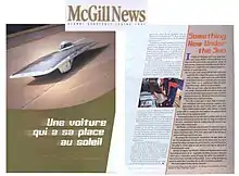 McGill Envirofest 2002 was an all day event on McGill Campus in the fall of 2002. The iSun car was featured alongside a hybrid electric vehicle. The day was spent educating the McGill student body and members of the public about environmental issues in transportation.
