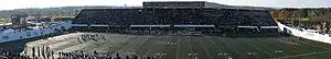 Replacing Alumni Field, the stadium hosted its first game on September 25, 1965, with UMass beating American International College, 41–0. The stadium was officially dedicated on October 16, 1965, when UMass defeated Rhode Island, 30–7, in a homecoming contest. The first sellout came on November 6, 1965, as Massachusetts hosted Holy Cross in front of 17,400 spectators.[7] On November 25, 1972, McGuirk held its largest attendance of 20,000 for the Massachusetts win over Boston College, 28-7.[8] The most recent sellout at the stadium was on September 27, 2014, with a shootout loss against MAC foe Bowling Green, 47–42.[7] The stadium is also the site of UMass Amherst graduation ceremonies, and hosted the 1987 NCAA women’s soccer championship. On April 10, 2009, an Amherst resident fell from the stadium in what police believe was a suicide.[9]