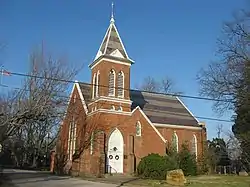 McJohnston Chapel and Cemetery is a historic chapel and cemetery located in Center Township, Vanderburgh County, Indiana. It was built in 1880, and is a small Gothic Revival style, rectangular red brick building. It has a projecting vestibule topped by a bell tower and steeple. Adjacent to the chapel is the cemetery, with the oldest gravestone dated to 1819. It is the oldest cemetery in Vanderburgh County that remain in use.[2]
