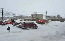 On March 3, 1962, the U.S. Navy activated the PM-3A nuclear power plant at the station. The unit was prefabricated in modules to facilitate transport and assembly. Engineers designed the components to weigh no more than 30,000 pounds (14,000 kg) each and to measure no more than 8 feet 8 inches (2.64 m) by 8 feet 8 inches (2.64 m) by 30 feet (9.1 m). A single core no larger than an oil drum served as the heart of the nuclear reactor. These size and weight restrictions aimed to allow delivery of the reactor in an LC-130 Hercules aircraft. However, the components were actually delivered by ship.[5] The reactor generated 1.8 MW of electrical power[6] and reportedly replaced the need for 1,500 US gallons (5,700 l) of oil daily.[7] Engineers applied the reactor's power, for instance, in producing steam for the salt-water distillation plant. As a result of continuing safety issues (hairline cracks in the reactor and water leaks),[8][9] the U.S. Army Nuclear Power Program decommissioned the plant in 1972.[9] Conventional diesel generators replaced the nuclear power station, with a number of 500 kilowatts (670 hp) diesel generators in a central powerhouse providing electric power. A conventionally fueled water-desalination plant provided fresh water.