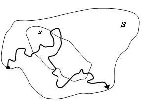 depicts the thought motion history of a single such particle, which thus moves in and out of the subsystem s three times, each of which results in a transit time, namely the time spent in the subsystem between entrance and exit. The sum of these transit times is the sojourn time of s for that particular particle. If the motions of the particles are looked upon as realizations of one and the same stochastic process it is meaningful to speak of the mean value of this sojourn time. That is, the mean sojourn time of a subsystem is the total time a particle is expected to spend in the subsystem s before leaving the system S for good.