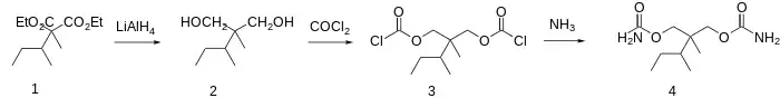 Mebutamate synthesis: Berger, Ludwig, U.S. Patent 2,878,280 (1959 to Carter Prod.).