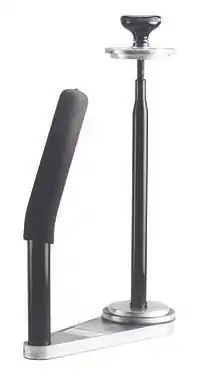 The amount of braking is often variable by means of either a knob or a lever system. The support structure is most commonly a base paired with a handle, but recently pole wrappers have been introduced providing a more ergonomic design.