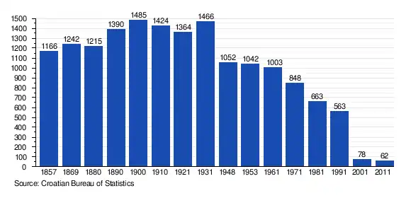 According to national census of 2011, population of the settlement is 62.[1] This represents 11.01% of its pre-war population according to the 1991 census.