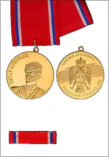 The Medal of Petar Mrkonjić (Serbian: Медаља Петра Мркоњића) is an Medal of Republika Srpska.[1] It was established in 1993 by the Constitution of Republika Srpska and 'Law on orders and awards' valid since 28 April 1993.[2]